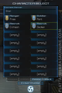 Select your character and click "Enter Battle".