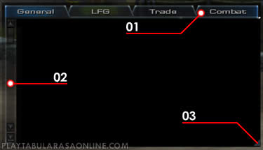 - These are the channel tabs. The basic channel tabs are General, LFG (stands for Looking For Group), Trade, and Combat. At this time, most people use the General and LFG tabs more than Trade and Combat.