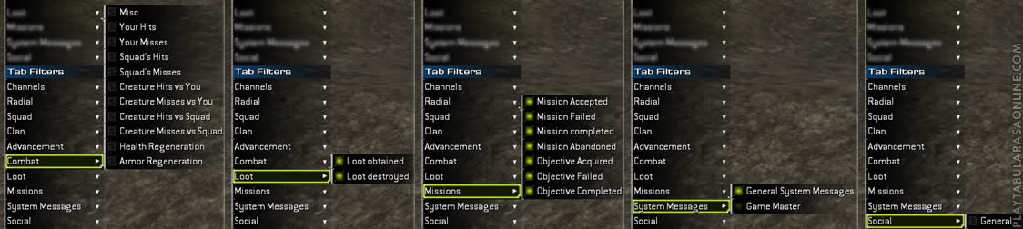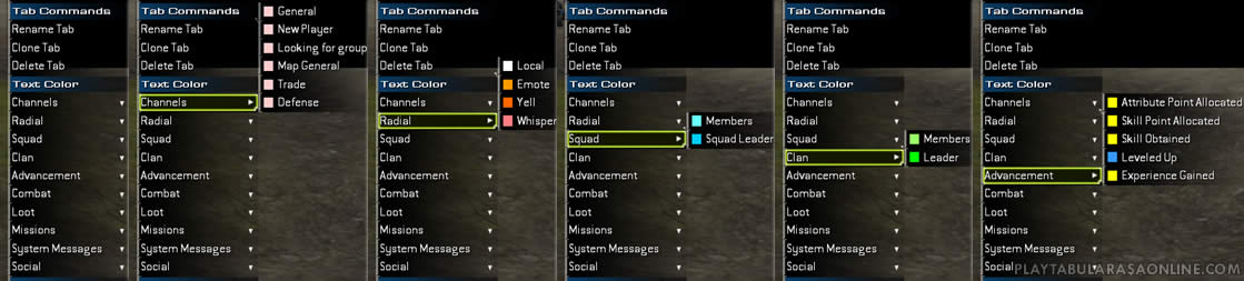 - Right-clicking the tabs brings up a whole drop down menu of options to help make your chatting experience in Tabula Rasa a little bit more pleasant.